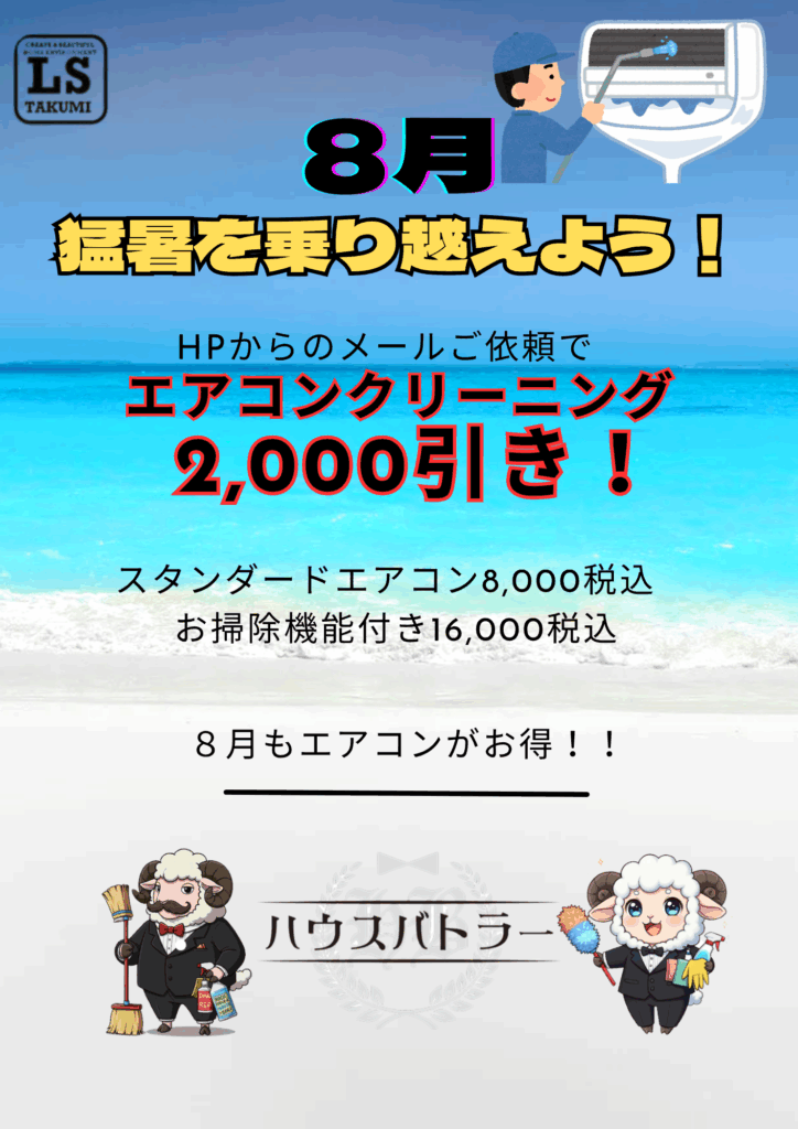 お知らせ 8月 残暑を乗り越えようエアコンクリーニングキャンペーン